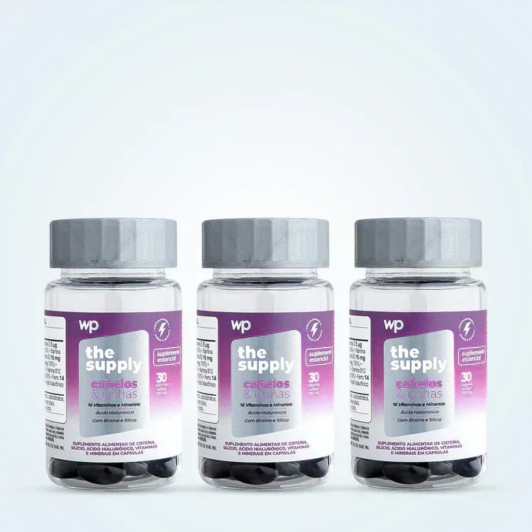 **The supply Cabelos&unhas** tem cápsulas de rápida absorção (softgel) e blend de 18 vitaminas e minerais para fortalecer cabelos e unhas.