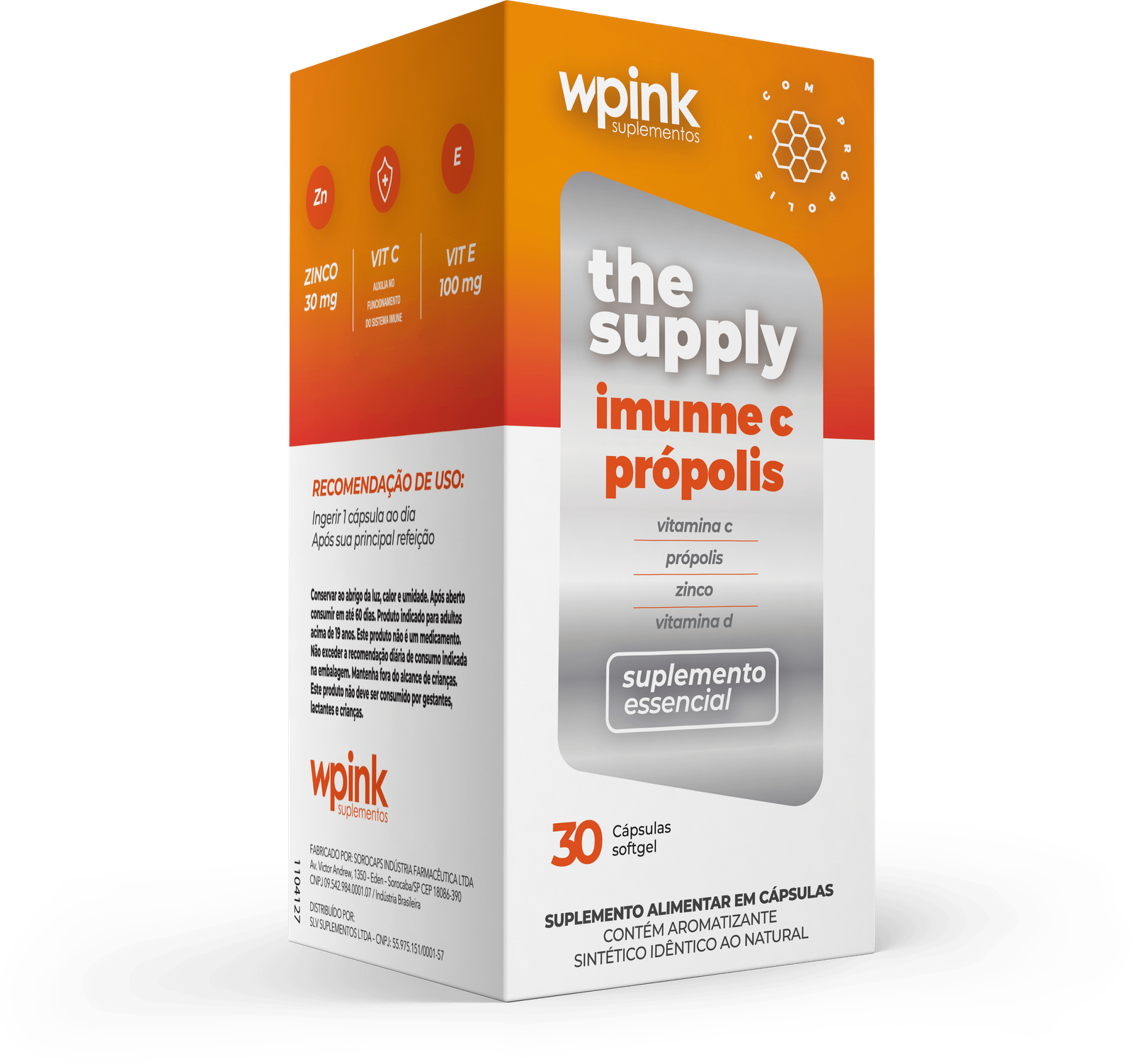 Destaque para 2.000UI Vitamina D, 30mg de zinco, 500mg vitamina C, 100mg de vitamina E.